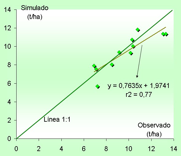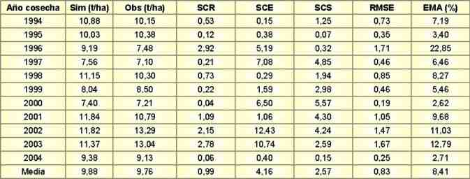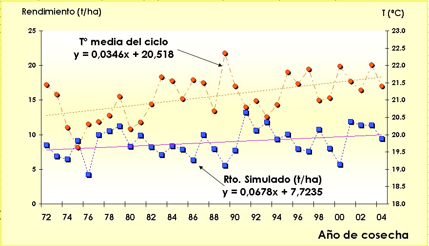 interanual sobre el rendimiento del cultivo. La simulación
